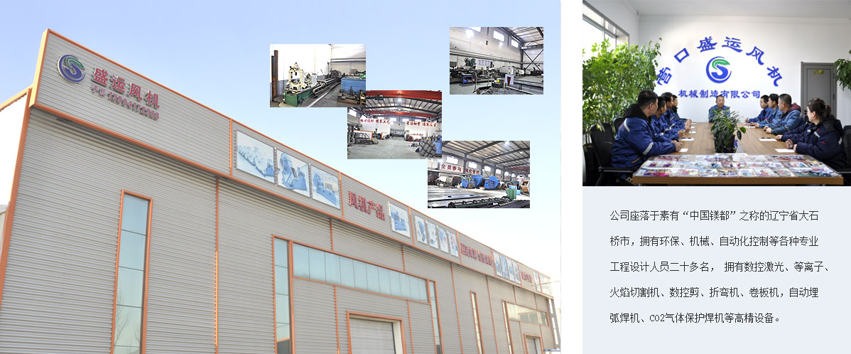 營(yíng)口盛運(yùn)風(fēng)機(jī)機(jī)械制造有限公司是一家從事各類風(fēng)機(jī)機(jī)械、除塵系統(tǒng)的研發(fā)、設(shè)計(jì)、制造為主的專業(yè)生產(chǎn)企業(yè)。公司座落于素有“中國(guó)鎂都”之稱的遼寧省大石橋市,